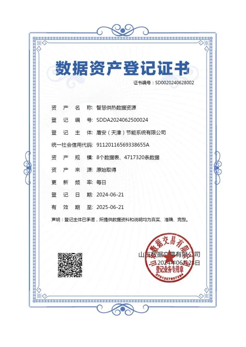 水發首單 盾安(天津)節能系統有限公司完成供熱行業數據資產入表